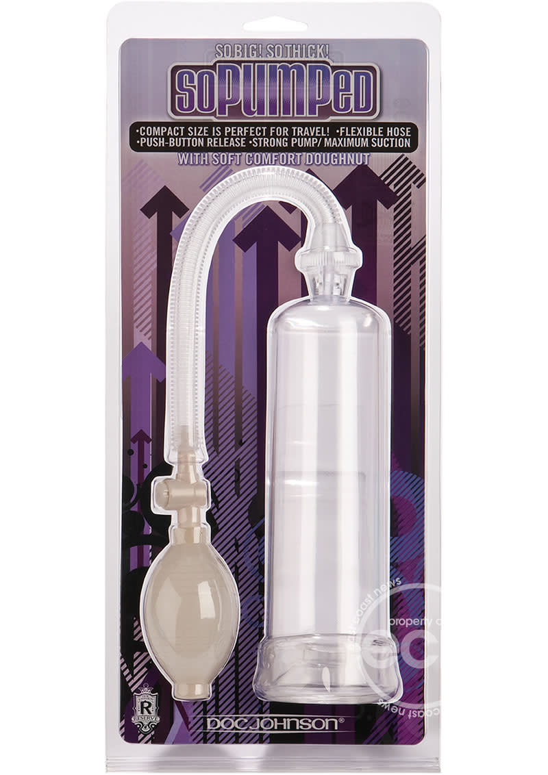 So Pumped new line of male enhancement pumps. Pump it up and get it bigger! For your buying pleasure we are super excited to present a pump with a soft comfort doughnut for added sensation and increased performance. Pump it up! Pump it up and never stop! So Pumped new line of male enhancement pumps. Pump it up and get it bigger! Grab the powerful pump with the donut that will get you all glazed and happy. Each one is available in clear or blue and are powered by an extra capacity pressure bulb. These pumps are industrial strength but priced for home use. Made using phthalate free, non-toxic materials ABS plastic cylinder. ABS is hard plastic, non-porous, durable and easy to clean and maintain.