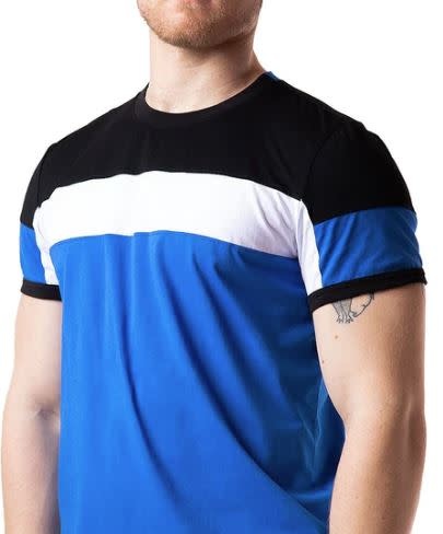Sport this sexy shirt and you’ll be sure to score points. The black, blue and white color blocking is super modern with an athletic edge. The stripe runs across the chest and matches up perfectly with the sleeves. Brand new for Spring 2023. Elevate your game in the Alliance Shirt.