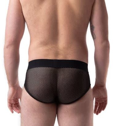 Liberate. Your. Pheromones. This daring and edgy brief offers the perfect combination of coverage and exposure, with a front that conceals while the back bares it all in 100% mesh.