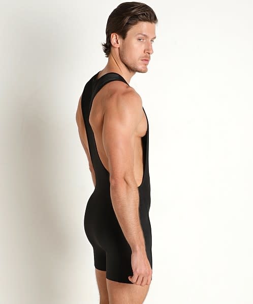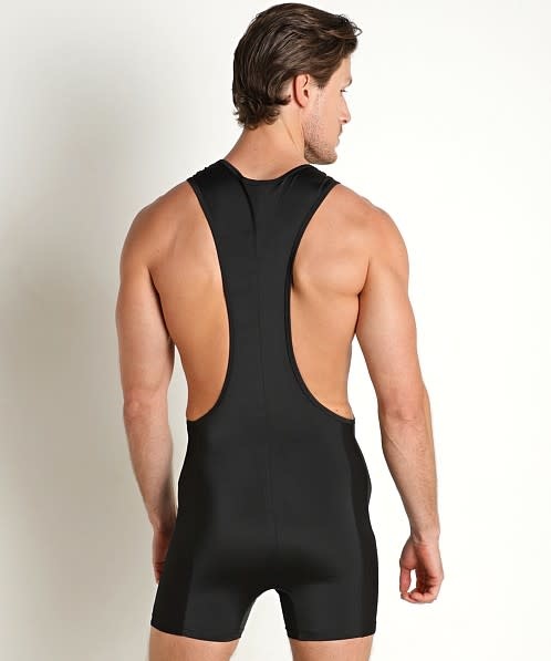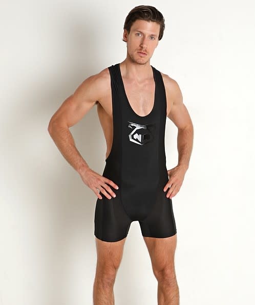 The Cyber Knight group from Nasty Pig takes its cues from all things Gotham. Dark, sexy and architectural, these black-on-black-on-black styles will have you ready for plenty of action, on and off screen. Grapple for position in this super sexy singlet. Three different black textures combine to deliver one incredible vibe. Made of two custom fabrics, the body is a matte black stretch spandex blend and the detail panels down the front are a fine performance black sport mesh that shows some skin and keeps you cool. The glossy snout logo on the front adds a third tonal texture that completes this piece perfectly. Single-use party gear ends up in a landfill and that's never what Nasty Pig is about. Go hard in this piece as it's built to last for years to come.