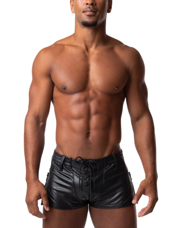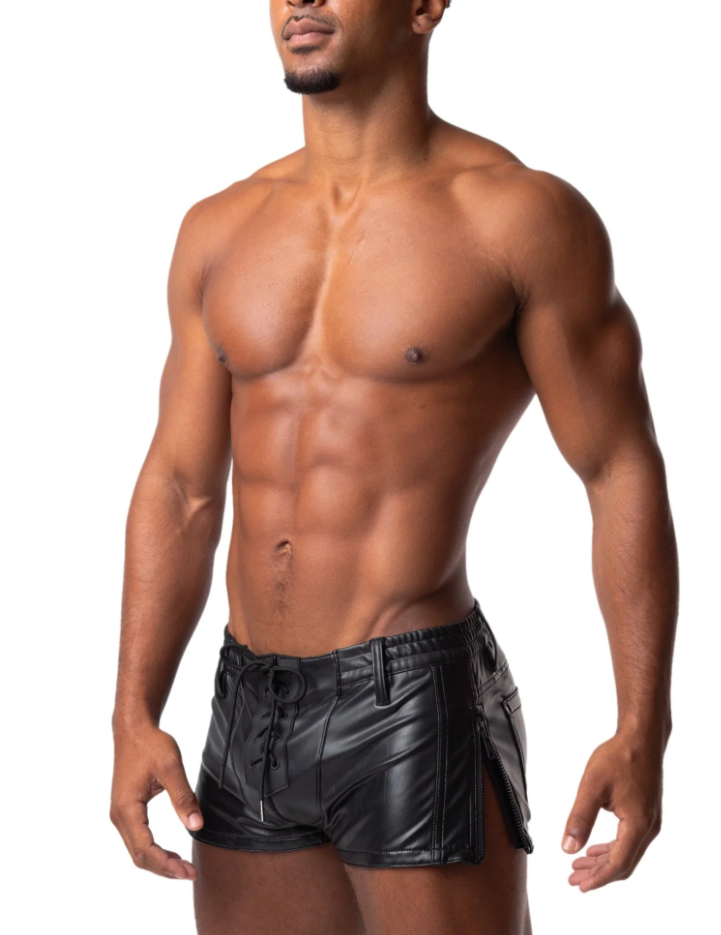The Surge Trunk Short is the ultimate gear for heavy-duty cruising. Made from our custom vegan leather, these shorts are as easy to clean as they are sexy to wear.