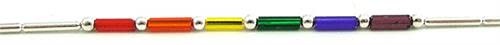 THIS NARROW BEAD NECKLACE FEATURES A GLOSSY SILVER COATED BEAD FINISH WITH GLOSSY RAINBOW TUBE BEADS IN CENTER. 18" LONG W/ SCREW TYPE CLASP.