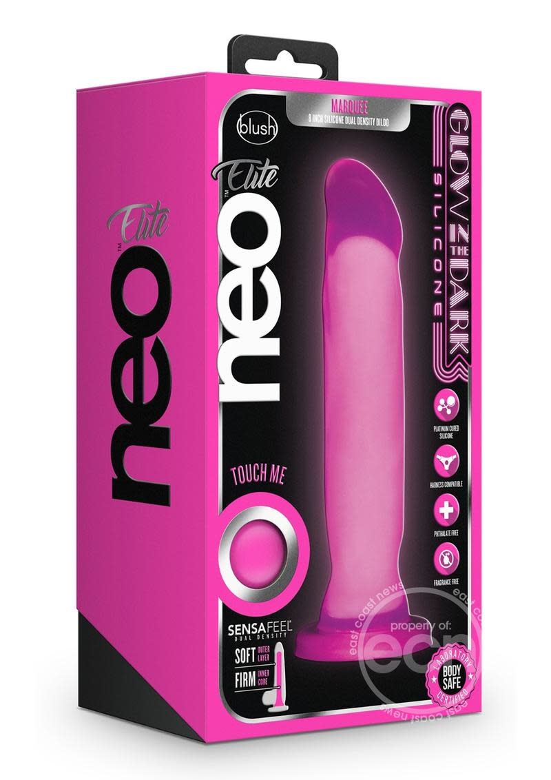 Neo Elite Glow in the Dark Marquee Silicone Dual Density Dildo with Suction Cup will bring new light to your bedroom!