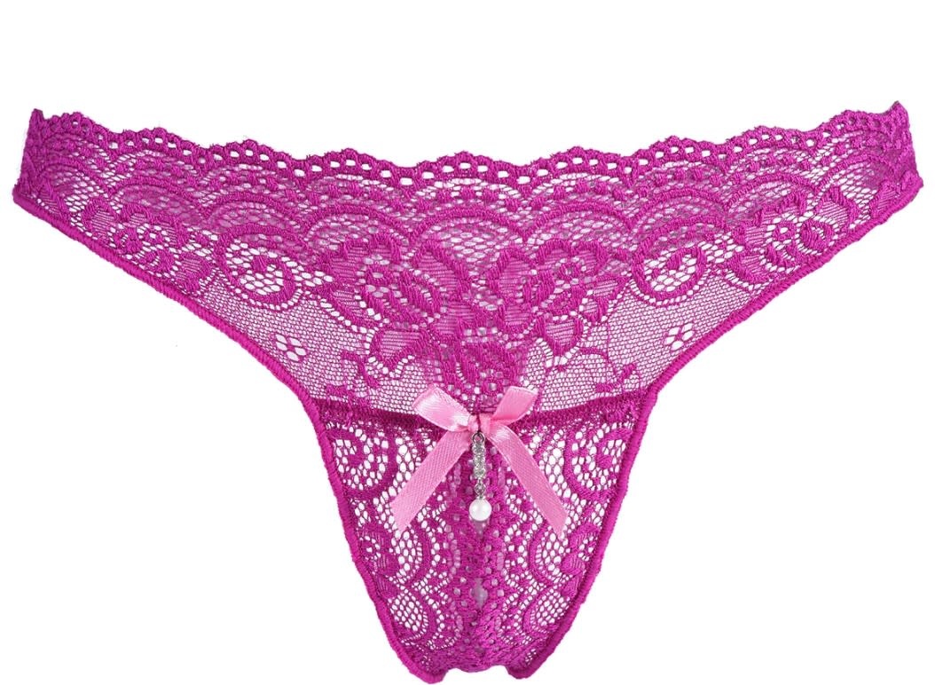NET G STRING WITH BOW & RHINESTONE STRING HANGING PURPLE
