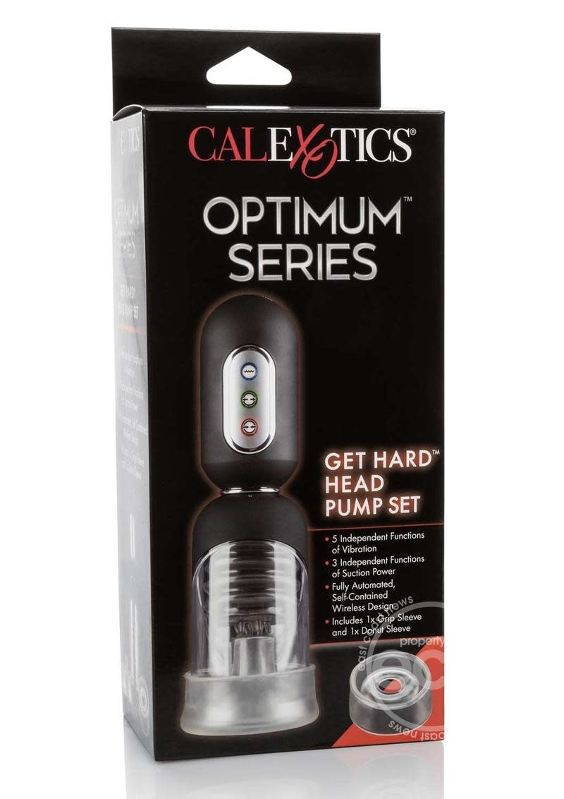 Supersize your pleasure piece with the Optimum™ Series Get Hard™ Head Pump Set. This high-tech, completely automatic pump delivers 3 levels of intense suction, 5 vibration functions & a vibration tickler cushion for truly explosive results. Increase stamina or give yourself over to total pleasure with 3 levels of sucking stimulation and 5 independent functions of vibrations. A soft vibrating contact pad with ticklers gives you the full-coverage sensation you have been craving.