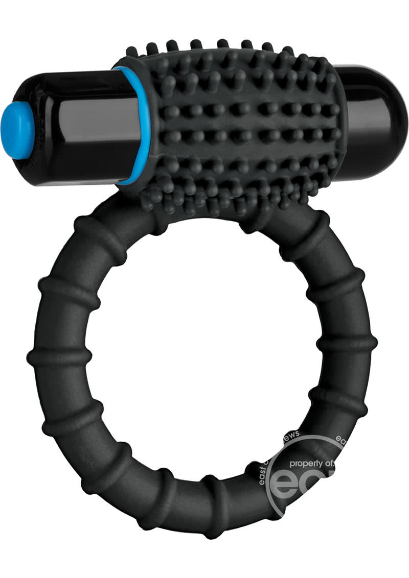 This powerful Vibrating C-Ring is made for pleasuring you and your partner - featuring a textured yet soft, stretchable silicone ring for easy use and a removable bullet in a nubby sleeve for comfortable stimulation. The push-button waterproof bullet offers 10 unique functions. Wear the ring atop the shaft for targeted clitoral stimulation or under the shaft or testicles for self-stimulation. Available in Black and Slate; phthalate-free; batteries included.