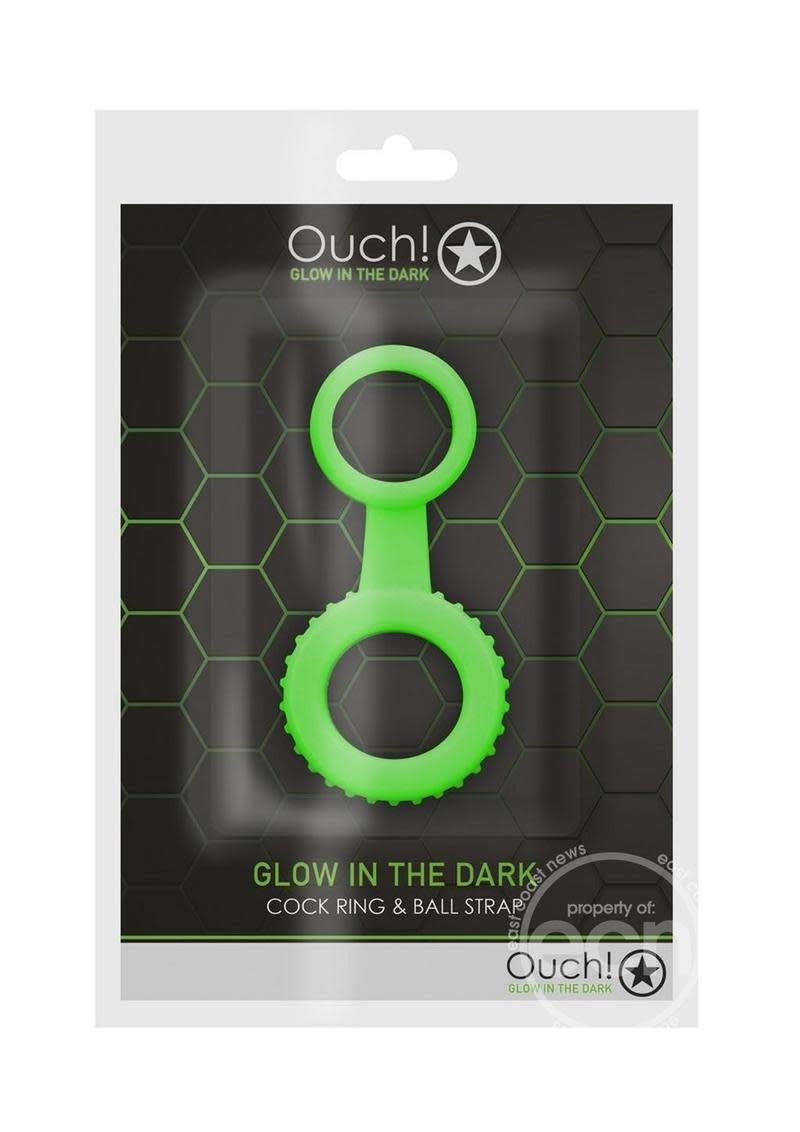 OUCH! COCK RING & BALL STRAP SILICONE GREEN GLOW IN THE DARK