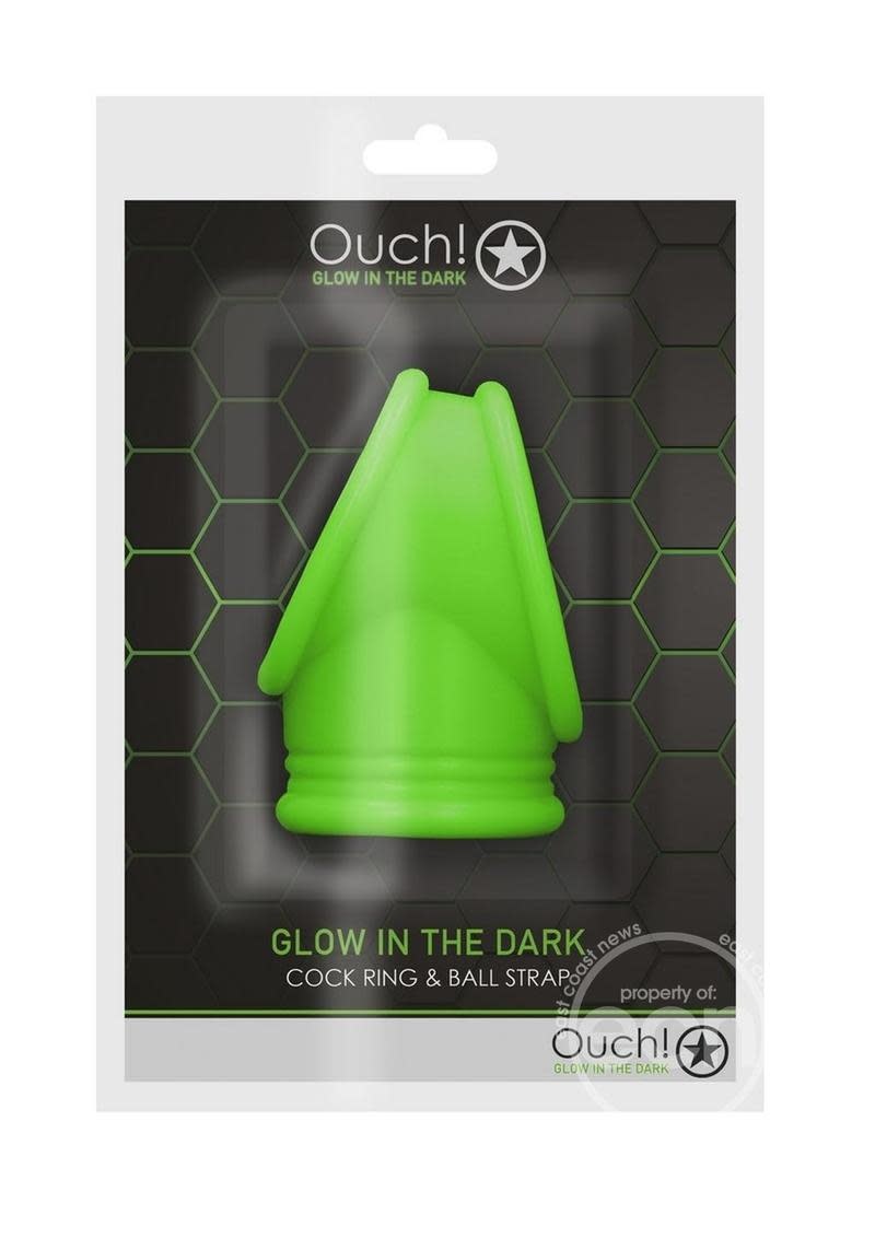 OUCH! COCK RING & BALL STRAP SILICONE SEPARATOR GREEN GLOW IN THE DARK