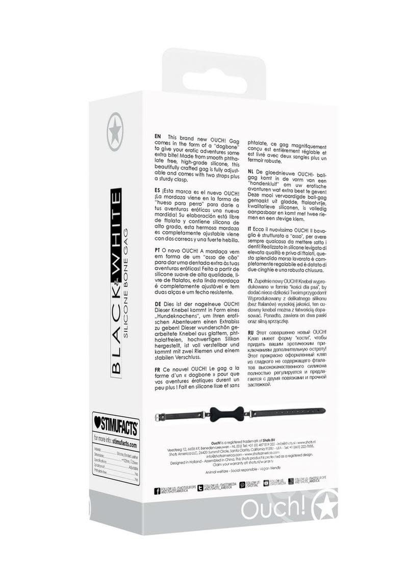 This brand new OUCH! Gag comes in the form of a dogbone" to give your erotic adventures some extra bite! Made from smooth phthalate free, high-grade silicone, this beautifully crafted gag is fully adjustable and comes with two straps plus a sturdy clasp.