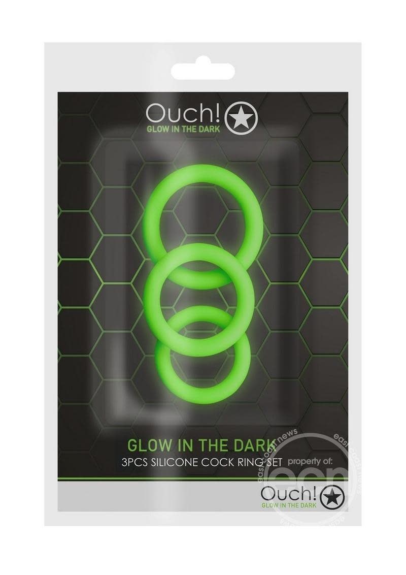 OUCH! SILICONE COCK RING SET GLOW IN THE DARK 3 PC