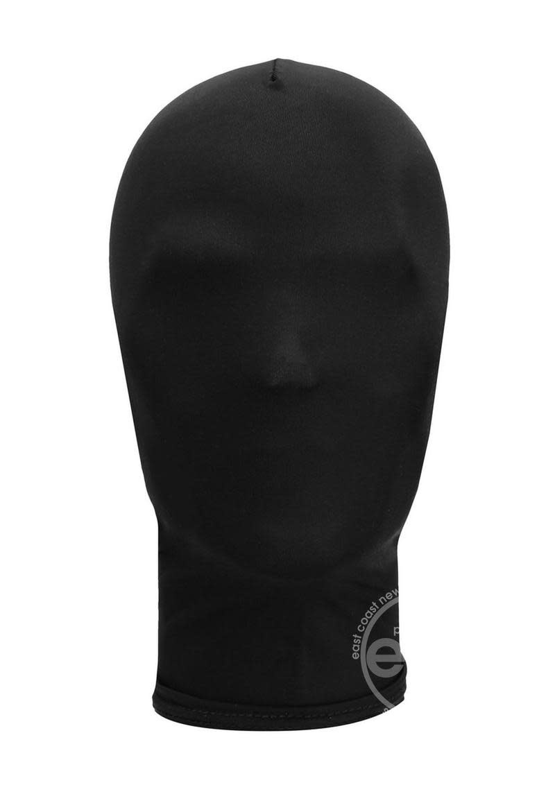 This comfortable Subjugation mask is designed to stretch completely over the head and closes easily at the back with a zipper. The fabric allows just a hint of light in while impairing vision and awakening other senses. The shiny hood can be worn by him or her, and the thin lightweight fabric makes breathing and hearing a snap.