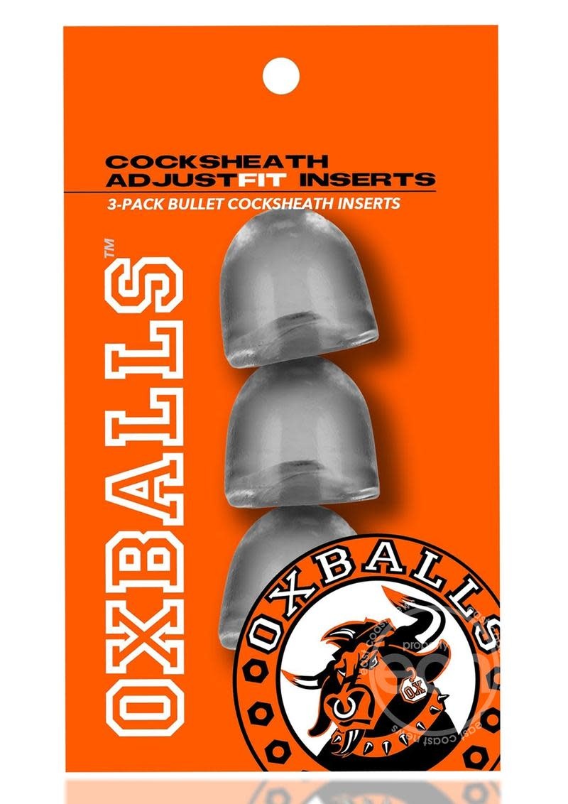 3-pack inserts for cocksheath extenders…customizes fit for you.*OXBALLS makes cocksheaths that custom fit everyone*We include one with every sheath, add up to 3 more ADJUSTfits*Made of clear, discrete Flextpr™, they “disappear” and feel just like your shaft*Each insert shortens the inside shaft about 7/8”*Shaped to snugly fit and form togetherINFORMATION:OXBALLS makes the best cocksheaths, big ones, long ones, thick, new skinny-thin sheaths…all designed to fit right and stay on. All our sheaths are built on our original cocksling base to they fit you no matter how hard you play.We include with every cocksheath a bullet shape insert to adjust the inside-shaft length for the best fit for you.ADJUSTfit 3-pack is three more inserts for more exact fit choices—any size guy can feel our sheaths custom fit to their size…add as many as you want making the sheath feel like it is part of you, feel firm from the base of your shaft to the tip of the sheath.The clear rubbery inserts “disappear” inside the sheath for a discrete look…they keep the cocksheath firm even when you aren’t as firm so you can keep playing hard.