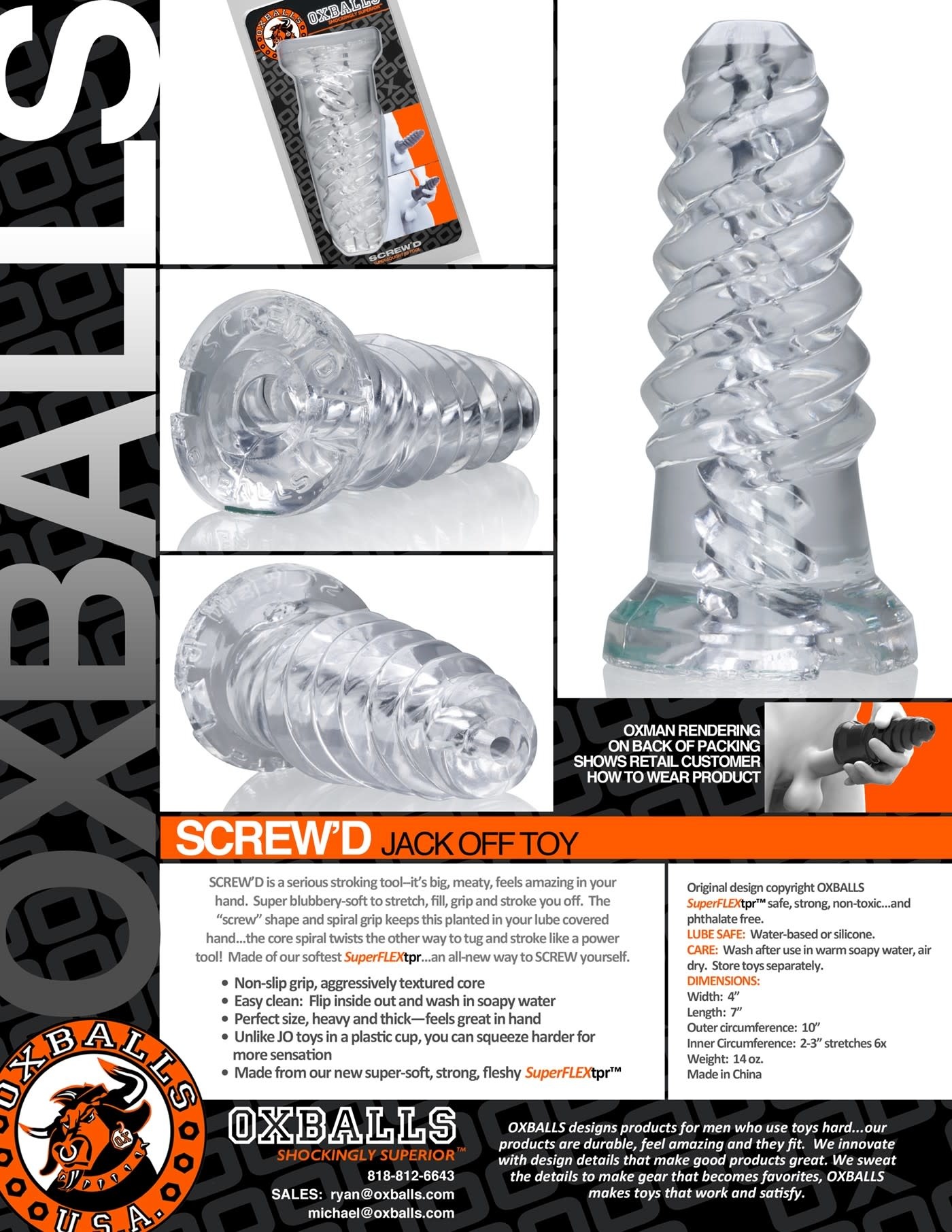 Don't let the heavy metal lookin' design fool you...SCREW'D is made from our signature SuperFLEXtpr so it's super fleshy n' rubbery to the touch.