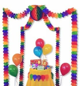 In the mood to party? This Rainbow Party Canopy is the perfect accessory for any party! It will brighten up your space and help get everyone in the mood to have a good time! The rainbow paper columns cover a 20'x20' area and there is a big tissue ball right in the middle.