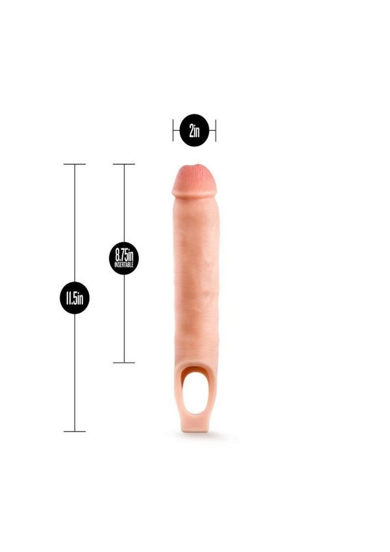 The Performance Plus 11.5 Inch Cock Sheath Penis Extender offers a smooth, realistic feel while maximizing your potential. Gain more girth and 2.5 inches extra length! The internal ribbing creates suction that holds the sheath securely in place. It also amplifies sensation for the wearer. Just insert your penis into the Performance Plus 11.5 Inch Sheath and then slide your testicles through the ball strap. Then explore new dimensions with your partner! Made of platinum cured silicone, the Performance Plus 11.5 Inch Cock Sheath is durable, body safe, and easy to keep clean.