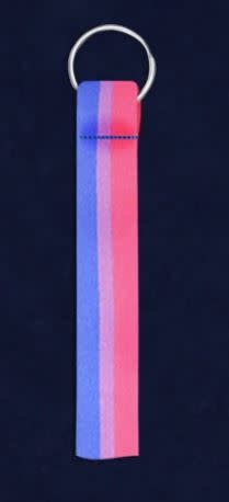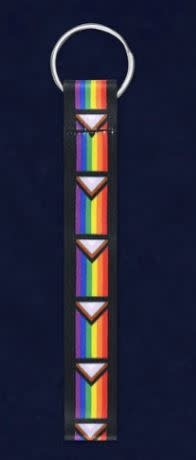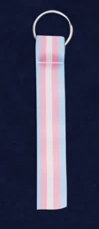 The keychains have a lanyard part that is long enough to slip over your hand. The fabric portion of the lanyard is 5 1/2 inches long by 3/4 inch wide.