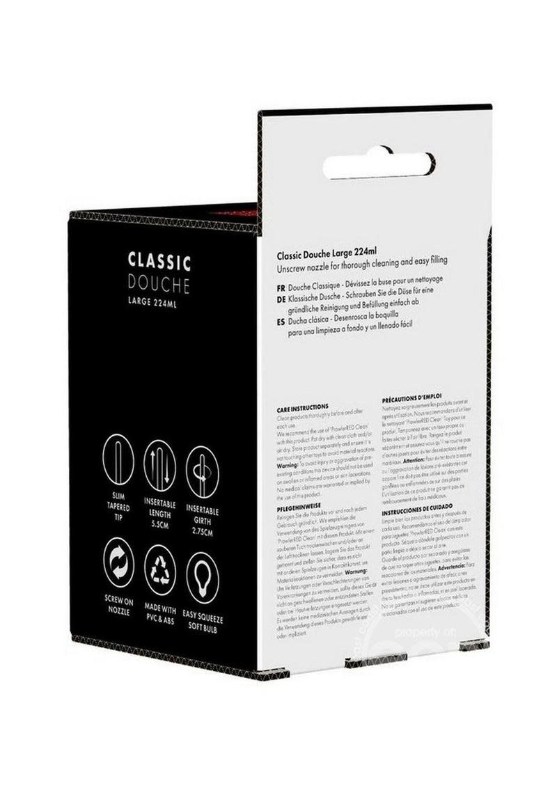 Prowler Bulb Douche is a classic douche. Featuring a PVC bulb and ABS plastic nozzle which can be cleaned easily and is simple to fill up and use. The base of the bulb is flat to enable standing it upright when needed. To fill, simply remove nozzle and hold under running water. Available in small, medium and large sizes in black.