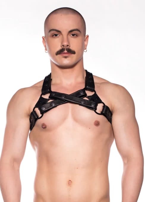 The Cross Harness is a welcome alternative to the classic bulldog harnesses. Two intersecting chest straps connect to the main body of the harness to give a sportier look than most leather harnesses. This harness comes in two sizes; S/M or L/XL and is adjustable in both sizes.
