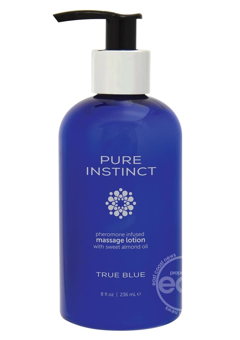 Awaken. Tempt. Touch. Inspire Desire. Awaken the senses with Pure Instinct True Blue Massage Lotion. Delicately fragranced with succulent notes of Australian mango and mandarin, a "come hither" hint of cinnamon and exotic blend of honey and white musk, this pheromone infused formula provides an irresistibly rich and silky glide.