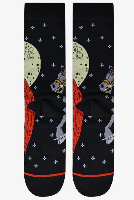 We are back at it with Rather Grim Studios with the Headless Rider. The legend of the Headless Horseman begins in Sleepy Hollow, no one knows where it ends. But we do know they will be the softest and most gruesome socks your feet will ever have the pleasure of slipping on.