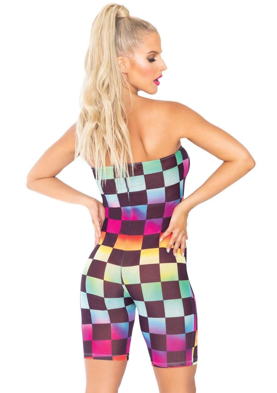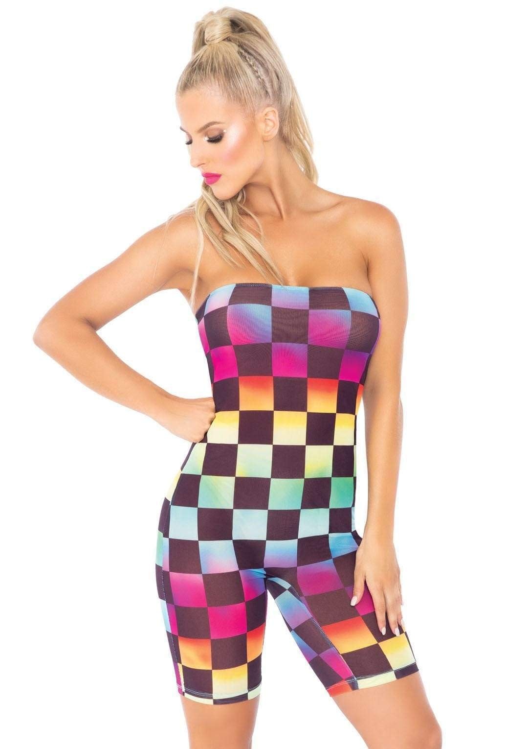 RAINBOW CHECKERBOARD STRAPLESS ROMPER