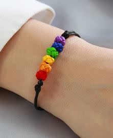 Rainbow Knots on a black cord - Adjustable up-to 11'' wrist