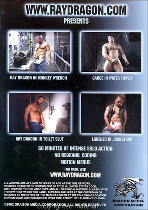 Ray Dragon's debut title features an hour of intense solo action. Scenes include Ray in Monkey Wrench and Toilet Slut; Gauge in Water Tower; and Lorenzo in Jockstrap.