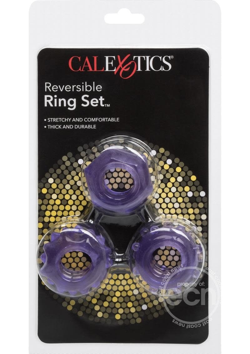 Spice up the night with the versatile Reversible Ring Set. The 3-piece set of erection enhancers is ideal for maximizing your erotic pleasure, and can be comfortably worn during foreplay fun or while enjoying solo play. The easy to use stretchy rings are thick and durable, and perfect for first time and experienced users.