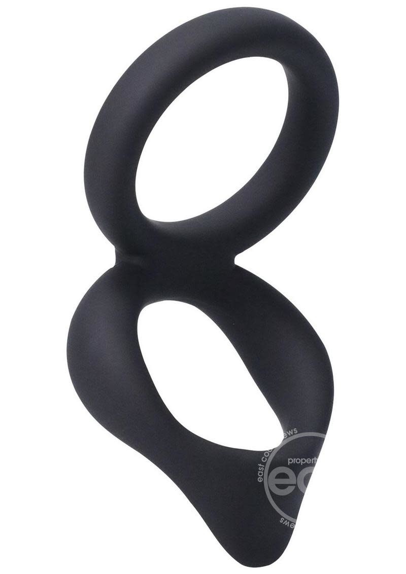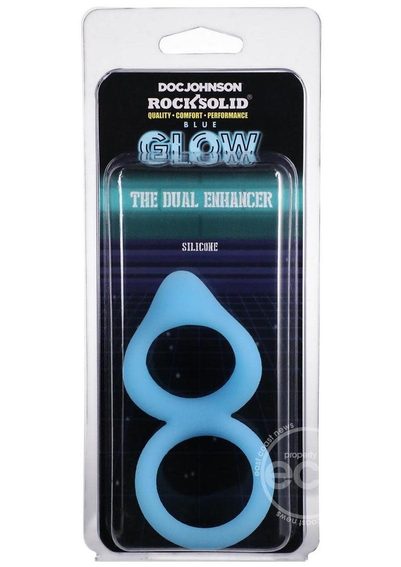 Enhance your orgasms with this double ring that stretches comfortably around the base of the penis and testicles. It is designed to help you achieve a longer-lasting and stronger erection, with a clit tickler on the ring to provide additional pleasure for your partner. The phthalate-free, body-safe, glow-in-the-dark material keeps the bedroom aglow as long as you last.