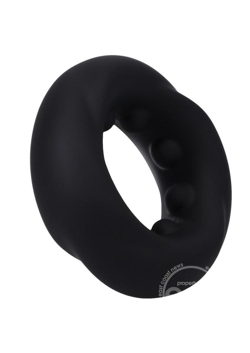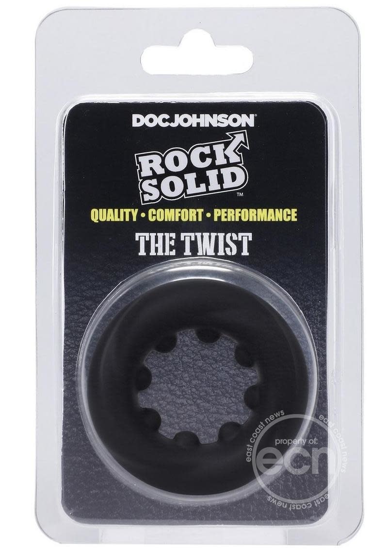 Soft and stretchy, with internal nubs for added stimulation, The Twist is an ideal thick silicone cock ring. Its stretchiness allows it to be worn over the balls and shaft to delay ejaculations and prolong erections. Phthlate-Free and Body-Safe.