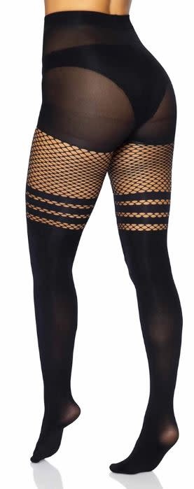 SEAMLESS OPAQUE THIGH HIGHS WITH FISHNET ACCENT BLACK ONE SIZE