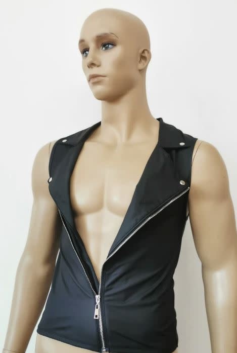 SLEEVELESS BLACK MOTORCYCLE JACKET