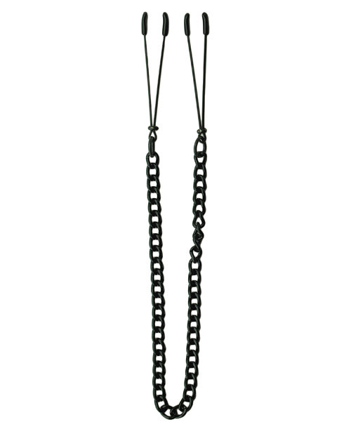 Entice your senses! Excellent for beginners, these adjustable black Tweezer Clamps from Spartacus can deliver a feather-light touch or a tight pinch. Tug on the attached chain for added sensation.