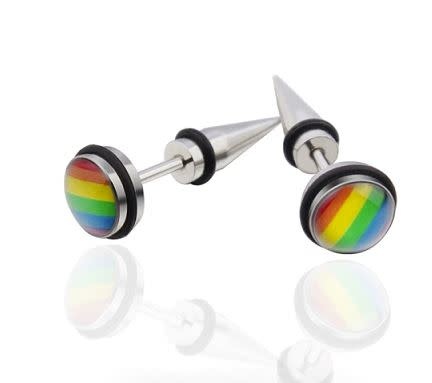 STAINLESS STEEL RAINBOW FAUX TAPER EARRINGS