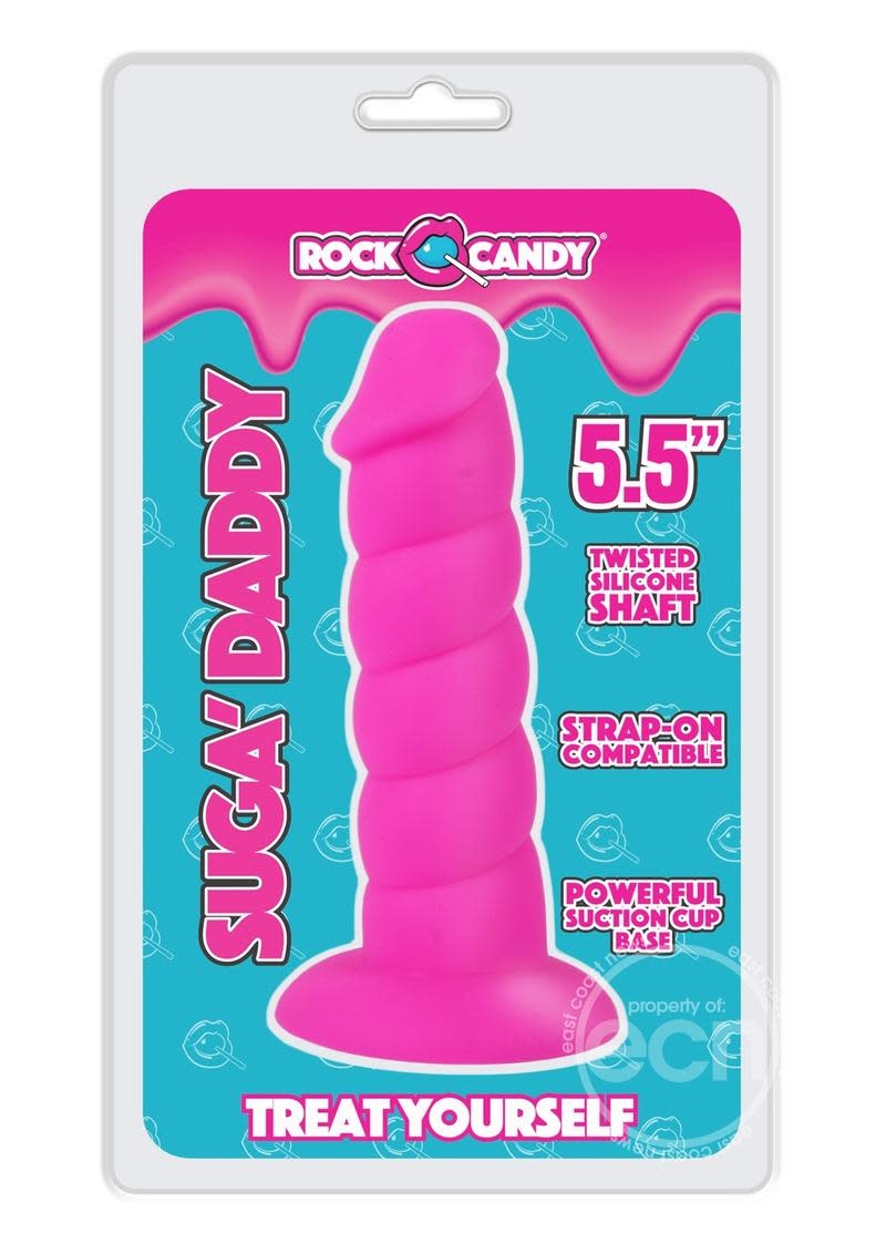 How many inches does it take to get to the center of your sweet spot? The Rock Candy® Sugar Daddy® is up for the challenge! Even better than the real thing, this chunky hunk is crafted to satisfy your deepest carnal cravings. The Sugar Daddy features an extra thick and twisted silicone shaft. The realistic head will tease and please the G-spot or P-spot as long as you can take it! With a flared suction cup base, the Sugar Daddy is harness-compatible for all types of play. Let the big Daddy show you that the candy man certainly can! (Who's your Daddy?)
