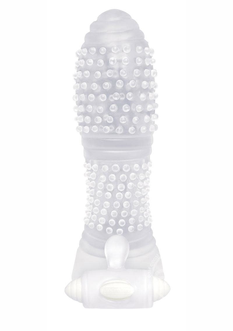 These cool looking vibrating extenders come in three unique styles, and each is a generous 5 1/2" long. In sexy, crystal-clear, body-safe TPR, they swirl, nub, rib and more, and add size and sensation to sex, at a sensationally affordable price. You’re looking at Nubbed, which has incredible pleasure “fingers” that are terrifically simulating! What’s more, the vibrator’s clever location stimulates the base of the penis while it rubs her just right! There’s even a 3-Pack for changing textural sensations nightly…what could be more fun!