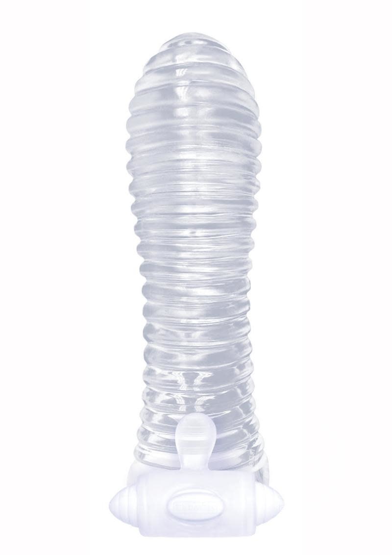These cool looking vibrating extenders come in three unique styles, and each is a generous 5 1/2" long. In sexy, crystal-clear, body-safe TPR, they swirl, nub, rib and more, and add size and sensation to sex, at a sensationally affordable price. The design you’re looking at is Ribbed, one of our most popular. You’ll enjoy the cleverly located vibrator, ideally located to stimulate the base of the penis while she’s digging the vibe! There’s even a 3-Pack for changing textural sensations nightly…what could be more fun!