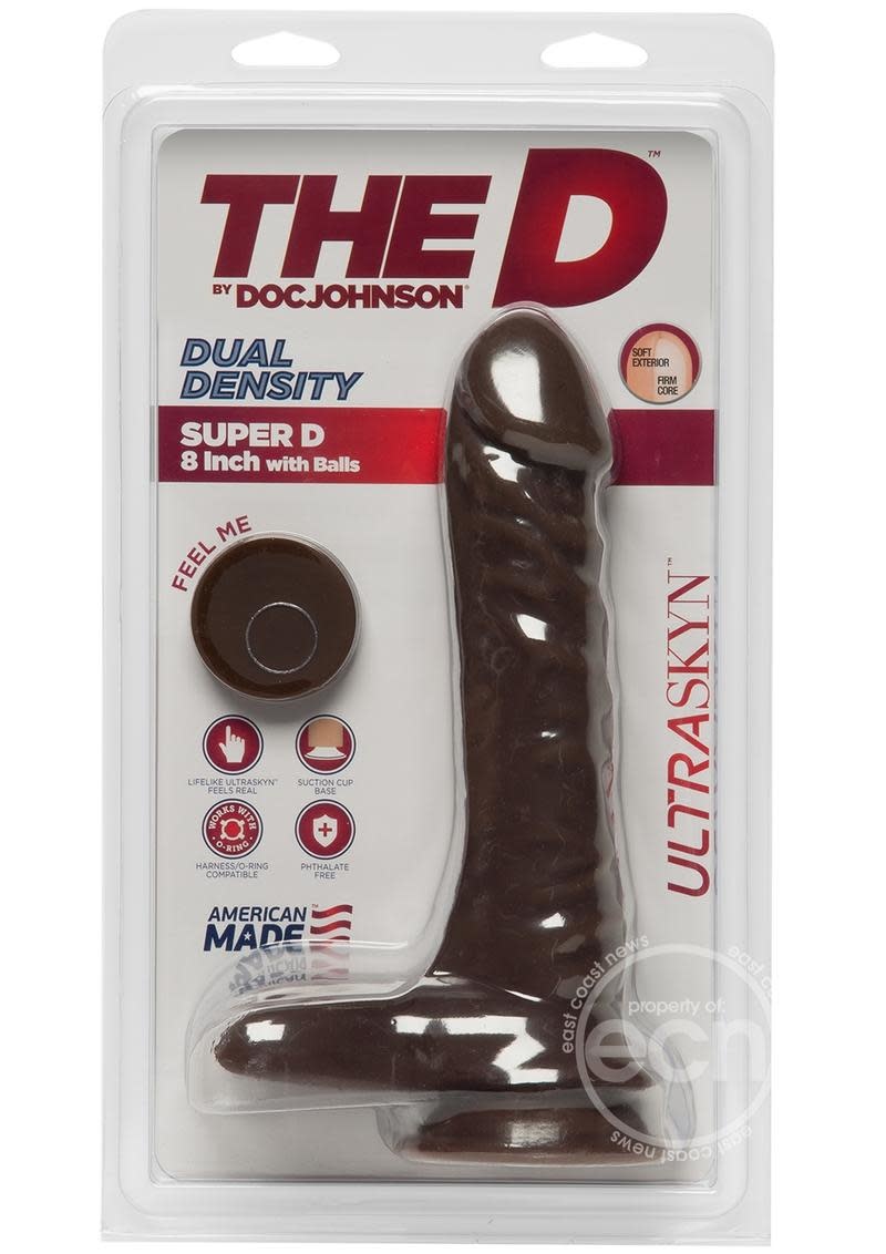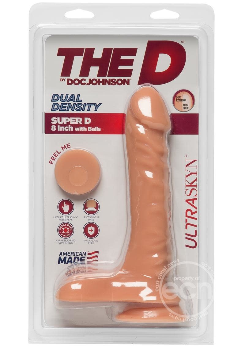 Everybody wants it! The dual density 8 inch Super D, featuring a soft, pliable exterior and hard inner core, warms to the touch to create the most realistic feel imaginable. The sculpted veins and contoured head add to the realistic effect while firm balls and a sturdy suction cup base make the Super D safe for all types of play. Like the entire line of products in The D collection, the Super D 8 Inch is proudly made in America. The D by Doc Johnson is an exciting collection of our best-selling shapes, reimagined in lifelike dual density ULTRASKYN. We’ve committed to keeping the quality high and the prices affordable, so everybody can get The D.