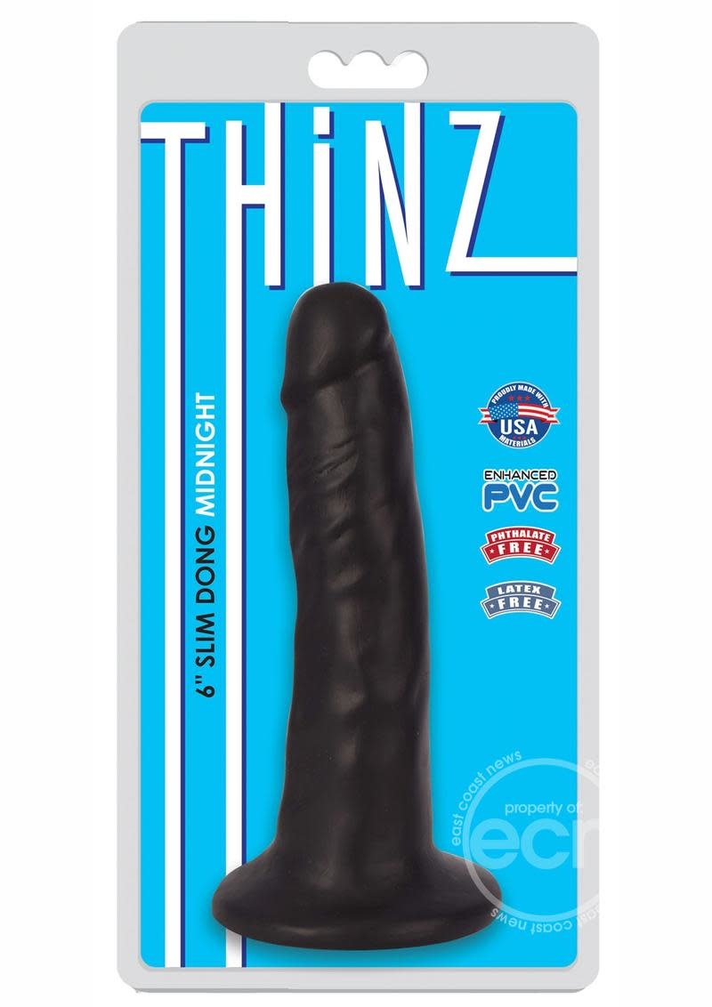 The Thinz 7 inch super slim dong is the perfect starter for all entryways. Ultra strong suction cup base works on any non porous smooth surface or can be used in your favorite harness. Made to look realistic with its lifelike features and rosy painted head. Made with USA Materials from Ultra Premium Enhanced PVC that is firm yet pliable for the ultimate comfort and pleasure. Low maintenance and easy to clean with soap and water.