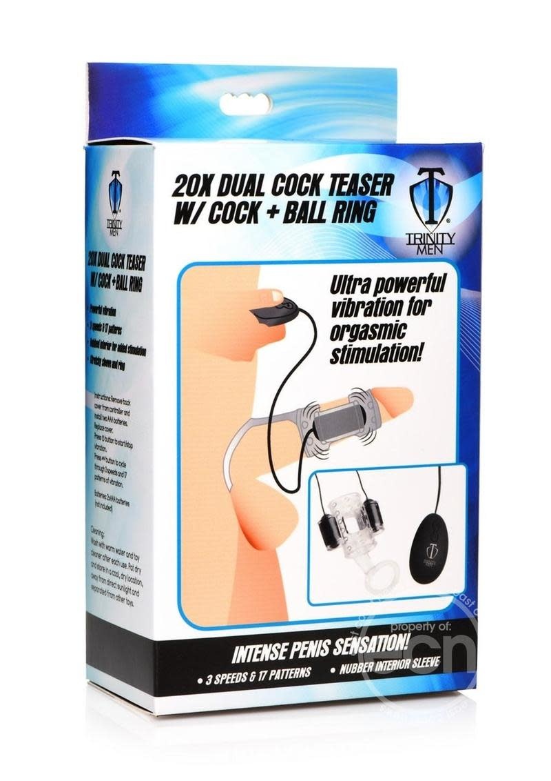 TRINITY MEN 20X DUAL COCK TEASER WITH COCK & BALL RING CLEAR