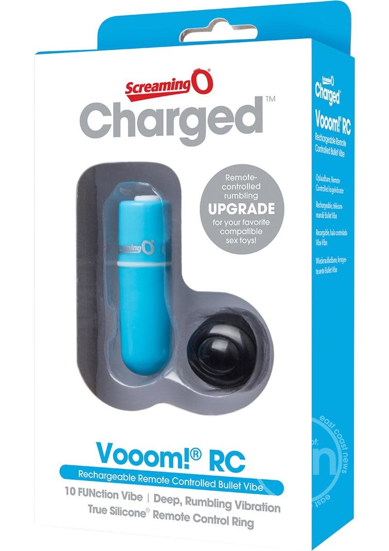 Upgrade your sex toy collection with Charged Vooom® RC, a deep rumbling rechargeable vibe powered by a clever remote control disguised as a finger ring. This compact 10-FUNction mini vibe can be used on its own or boosted by the remote, which works up to 50 feet away for rumbly fun from across the room! This waterproof bullet can upgrade almost any bullet-compatible sex toy or harness and add a rumbling element to solo and partnered play.
