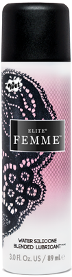 Have it all with Elite® Femme™ Water Silicone Blended Lubricant. Designed to mimic a woman's natural moisture, Elite Femme Hybrid provides the comfort of a pure water base and the sensual, long lasting silkiness of a silicone. Longer lasting than water-based formulas, reapply this formula less often and keep your hands focused elsewhere.