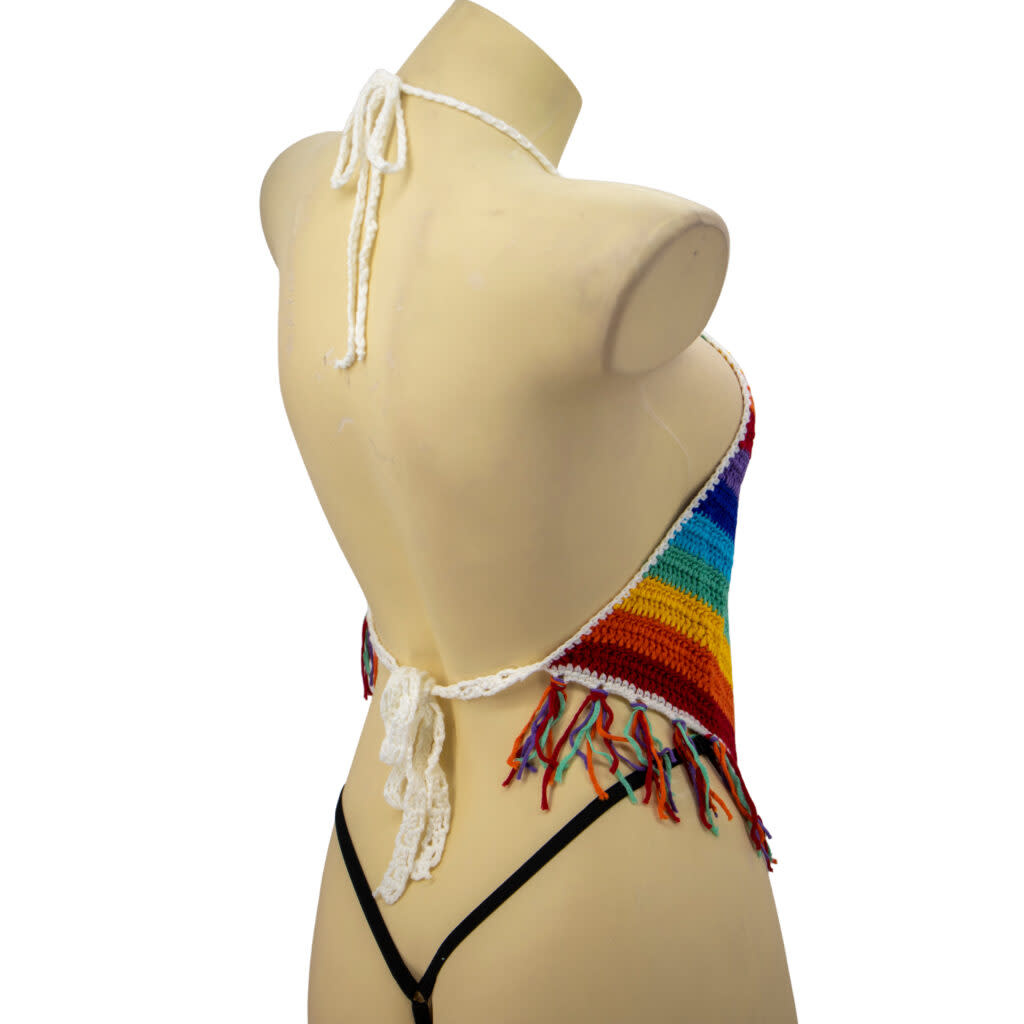 RAINBOW CROCHET HALTER TOP WITH FRINGES