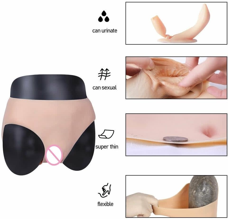 YUEWEN SILICONE REALISTIC FALSE PUSSY BRIEFS BEIGE LARGE