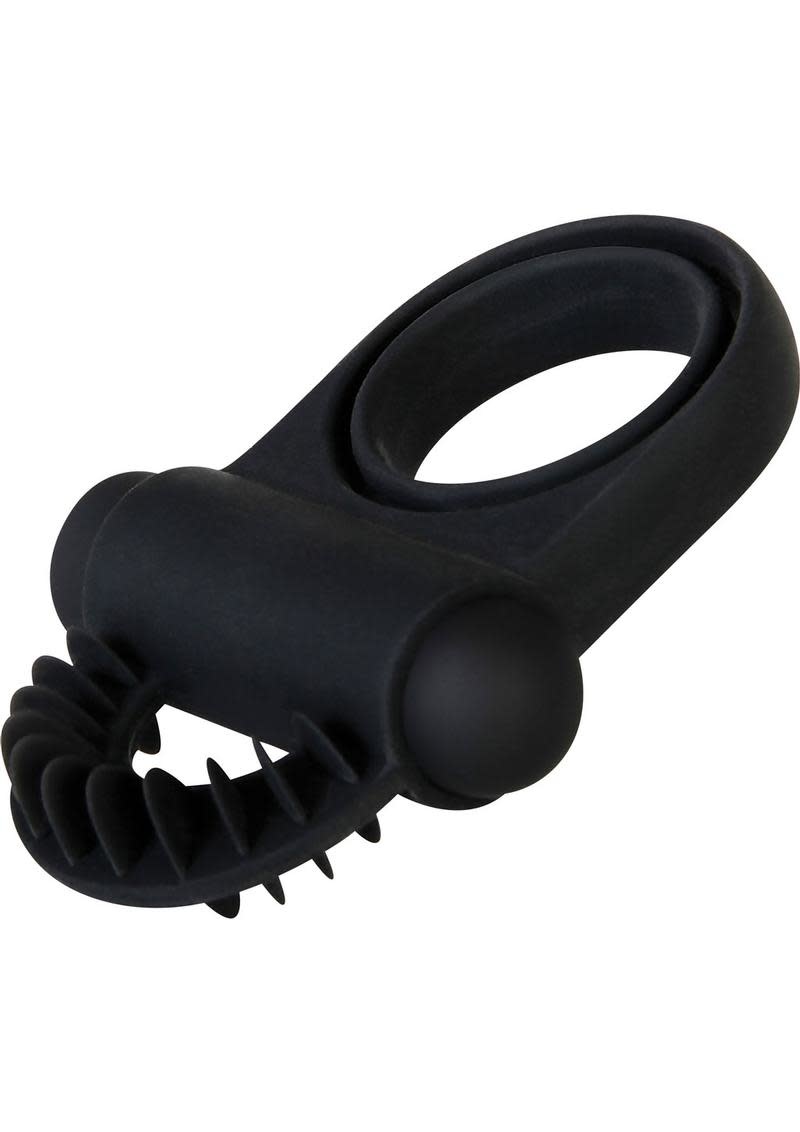 One loop slides to the base of the penis and one goes around the balls in this tantalizing design that features a rechargeable vibrating bullet tucked inside a sleeve for powerful erotic sensations. A row of ticklers sit above the bullet to stimulate his partner's clitoris, completing the mutually orgasmic experience that also gives him an enhanced, longer-lasting erection. Clean up easily with Zero Tolerance toy cleaner and a warm water rinse.