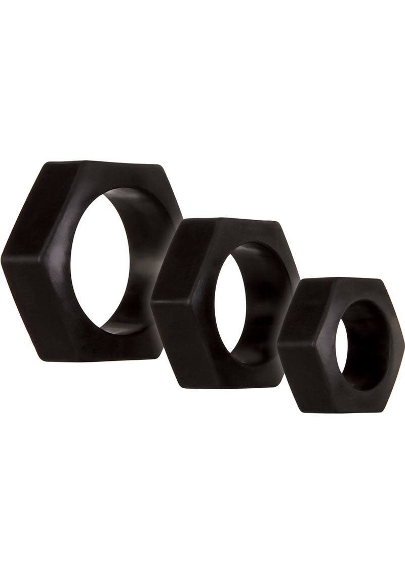For stronger erections that lasts longer, get the right hardware for the job! Slip a stretchy TPE rubber lug nut all the way to the base of your member and see the results for yourself in minutes. These hard-working rings use a simple design that works to increase blood supply where you need it most, giving you the torque to blow her mind during lovemaking! Enjoy them in the shower or bath as they're completely waterproof and clean with Zero Tolerance Toy Cleaner and a warm water rinse.