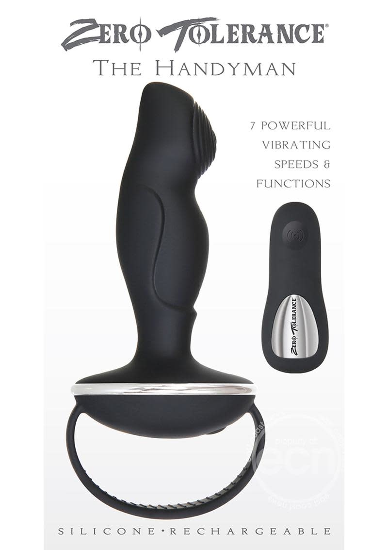 Men love their tools, and this powerful P-spot stimulator is no exception! With 7 mind-blowing speeds and a textured shaft and tip, its gentle curves are designed to reach the prostate effortlessly. Prostate orgasms are one of the most intensely pleasurable experiences a man can have, and the right device is key to tapping into that extraordinary feeling. The remote control works up to 50 ft away, or you can control the toy directly while you enjoy the ergonomic hand grip and strap. Use plenty of Zero Tolerance Lube and clean your Handyman with Zero Tolerance Toy Cleaner and a hot water rinse.