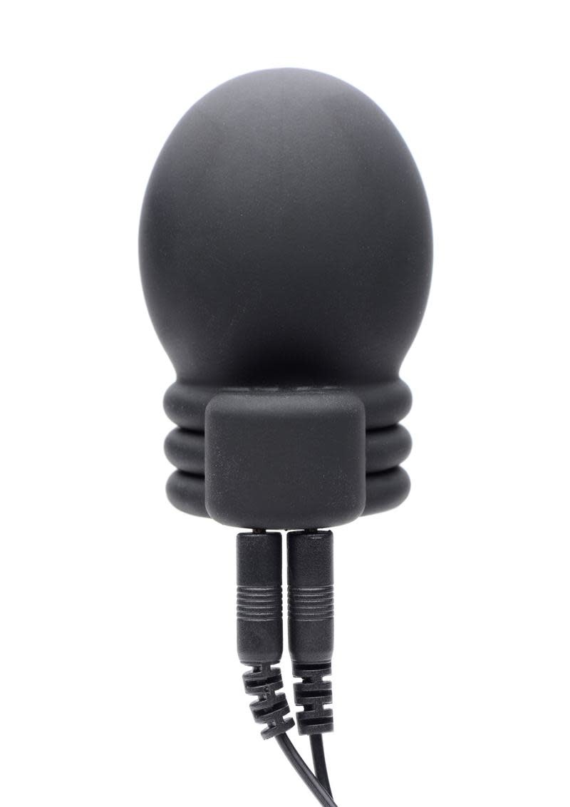 Make your cock quiver with pain and pleasure! This silicone head teaser includes leads to plug it into your compatible Zeus Powerbox. The interior is lined with conductive silicone so that your entire penis head is encapsulated in electricity. Send tingles and zaps into the tip of your dick, or play with a partner. Made of non-porous and phthalate-free silicone, this E-stim accessory is body-safe and easily sanitized with mild soap or toy cleaner and warm water. Avoid use with silicone lubricants.